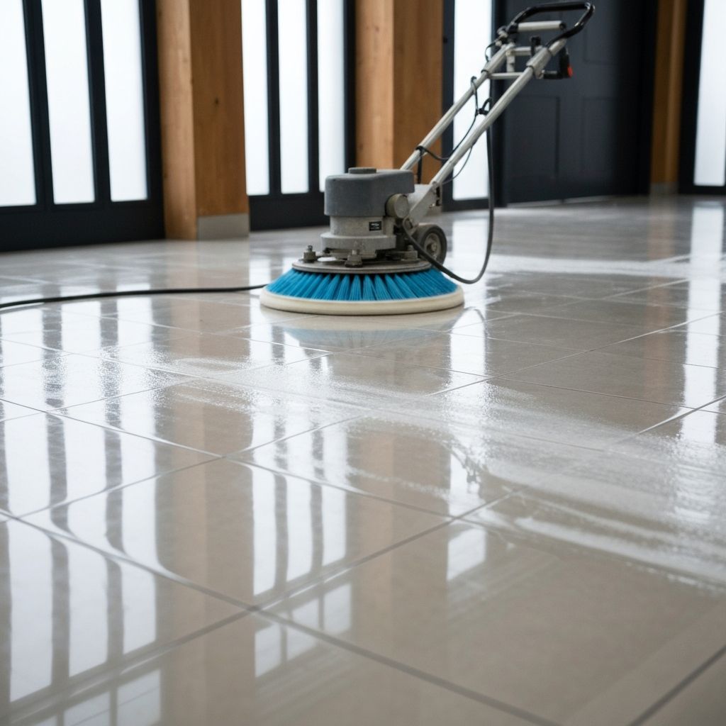 Rénovation de vos sols en terre cuite, carrelage et sol PVC. Décapage mono brosse et application de cire et plastificateur haute performance.